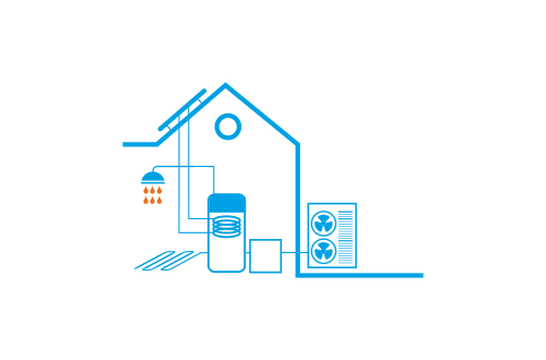 Profitieren Sie von den Vorteilen einer Luft-Wasser-Wärmepumpe in Kombination mit einem Gas-Brennwertkessel für Heizung, Kühlung und Warmwasser. -